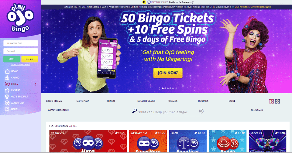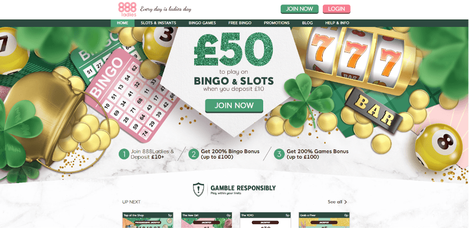 1st Deposit only. Dep & stake £10 on bingo and get £40 of bingo bonuses, &/ or £10 on slots for £20 slots bonus. Wagering applies. T&Cs apply.