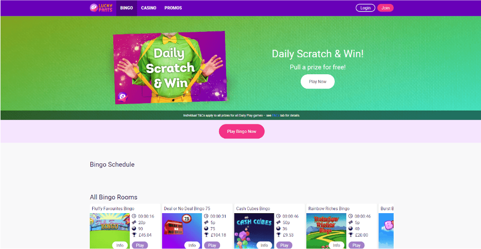 Another Top Online Bingo Site is Lucky Pants Bingo. It is known for their lucrative Welcome Offer and wide selection of Bingo Games. But besides these amazing Bingo Games and Bonuses you can get much more at Lucky Pants Bingo. They offer the Best Slingo Games, Slots and many other games.