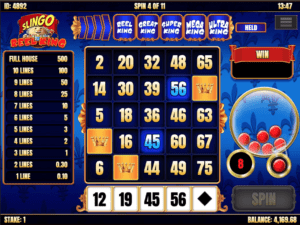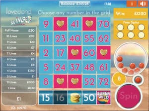 The game has a 5×5 grid. The player receives 12 spins to mark these by drawing them on the bottom reel. Each line of marked numbers creates a Slingo. Wilds and Super Wilds can be landed on this reel too and empowers players to choose any highlighted number.